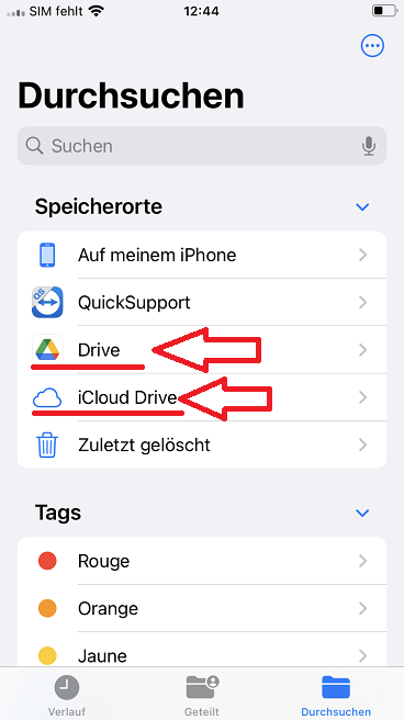 Schließlich müssen Sie für die Übertragung über Cloud-Anwendungen vom Ziel-iOS-Gerät aus über „Dateien” zum Stammverzeichnis des Geräts navigieren.