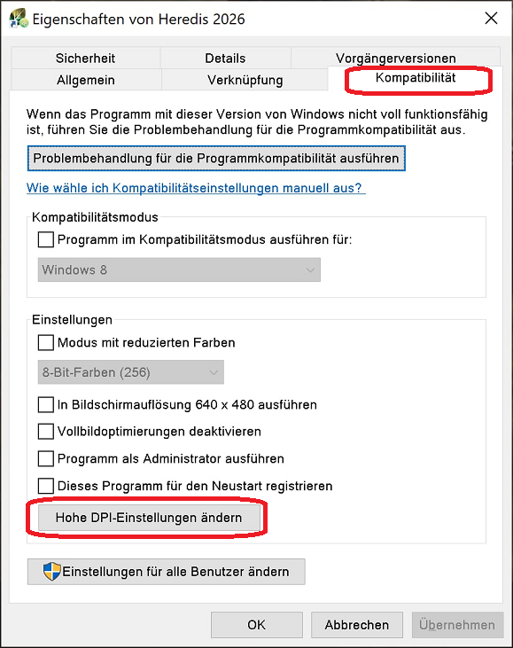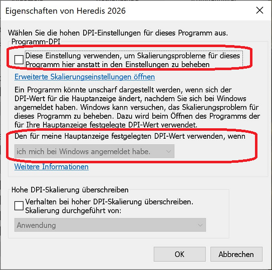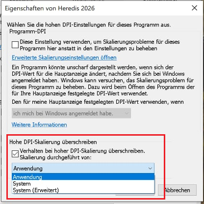 So beheben Sie Probleme mit der Skalierung und Unschärfe bei der Anzeige von Heredis: