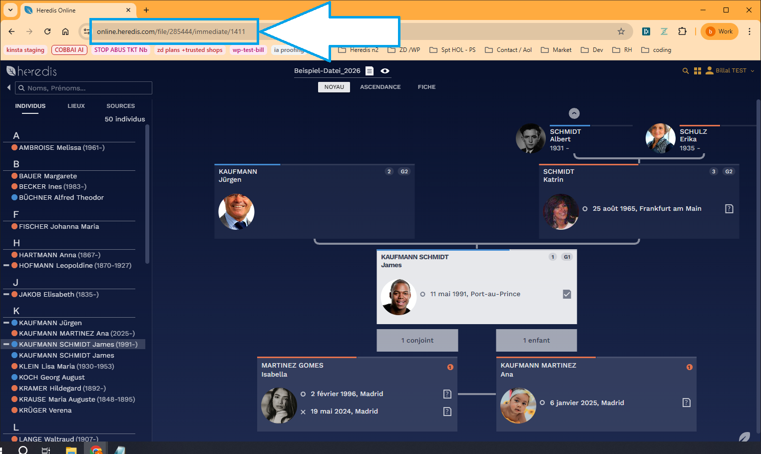 Öffnen Sie in Heredis Ihre Genealogie und klicken Sie auf