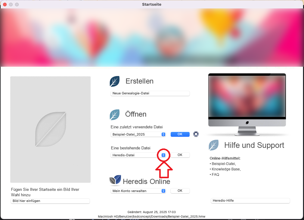 Ihre Genealogie-Dateien werden lokal gespeichert, d. h. im Speicher Ihres Computers. Durch die Deinstallation der Heredis-Software werden Ihre Genealogie-Daten niemals gelöscht.
