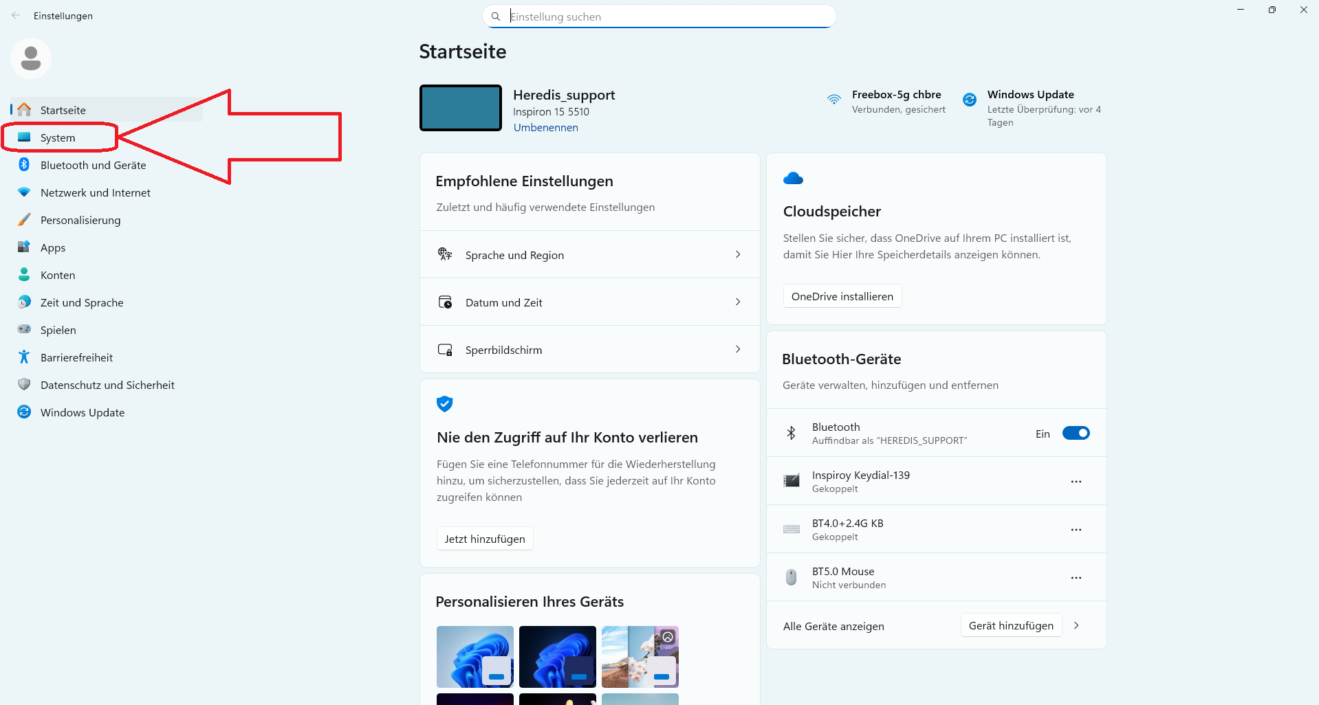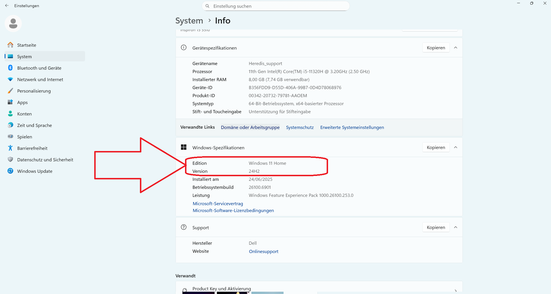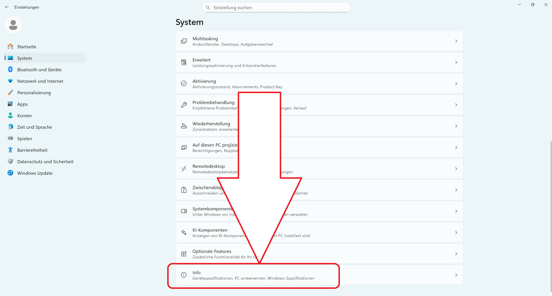 Scrollen Sie unter „System“ nach unten zu „Info“: