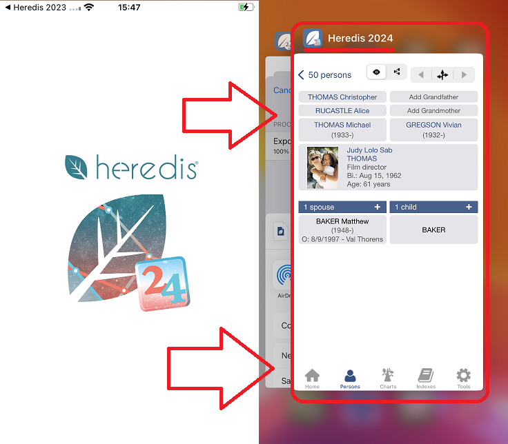 When you switch from the Heredis 2023 for iOS to Heredis 2024 for iOS, you can convert your file directly on your mobile device as follows: