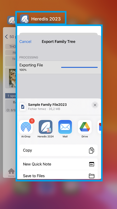 Once the export is complete, the exported file will automatically open in Heredis 2024 for iOS: