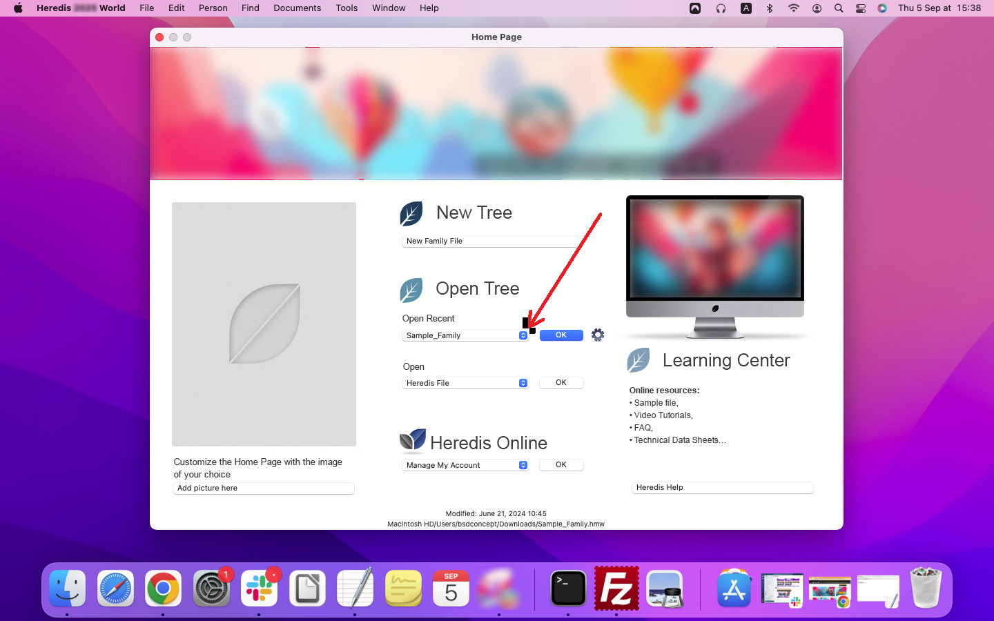 To convert your file, open Heredis on its home page. If you see your file in the list of recent files, simply click on it to start conversion: