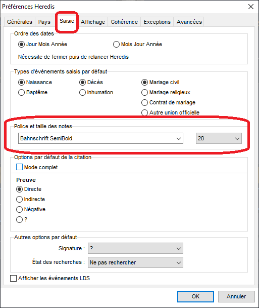 Par ailleurs, il y a d'autres options de réglages des polices dans les préférences Heredis.