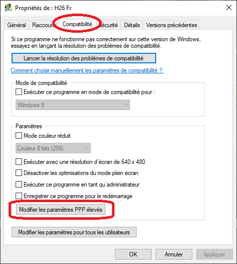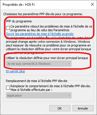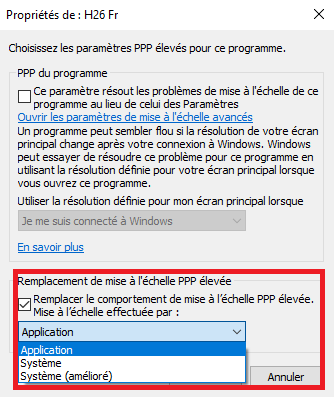 - Sous « PPP du programme», cochez l'option "Ce paramètre résout les problèmès de mise à l'échelle..."