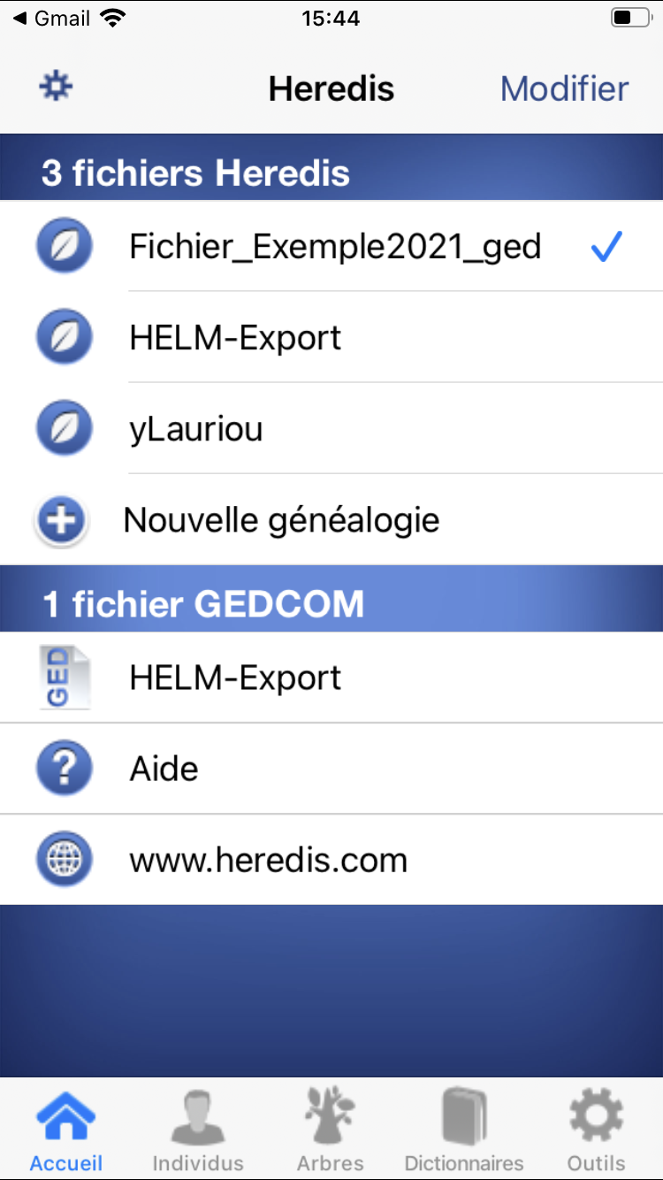 Sur votre mobile, lancez l'application Heredis et ouvrez votre fichier en le sélectionnant dans la liste des fichiers :